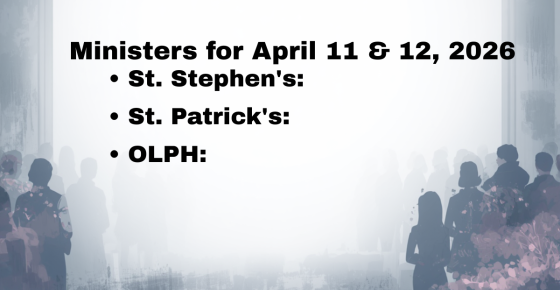 "๐๐ข๐ง๐ข๐ฌ๐ญ๐๐ซ๐ฌ ๐๐จ๐ซ ๐๐ฉ๐ซ๐ข๐ฅ ๐๐ & ๐๐, ๐๐๐๐ – ๐๐ญ. ๐๐ญ๐๐ฉ๐ก๐๐ง’๐ฌ – ๐๐ญ. ๐๐๐ญ๐ซ๐ข๐๐ค’๐ฌ – ๐๐๐๐"๐๐ข๐ง๐ข๐ฌ๐ญ๐๐ซ๐ฌ ๐๐จ๐ซ ๐๐ฉ๐ซ๐ข๐ฅ ๐๐ & ๐๐, ๐๐๐๐: โข St. Stephen’s: Greeter: Bob Barry Lector: Terrie Atwood Eucharistic Ministers: Wayne Niggli, Tony Zelsnack Ushers: Bill McGovern, Alex Hartman April Cleaner: Rosemarie Fralick Tabulators: Karen Standish, Wayne Niggli โข St. Patrick’s: Greeters: Anne Clerkin, Anne Ballard Lector: Kathy Cusick Tabulators: Cathy Cummings,…