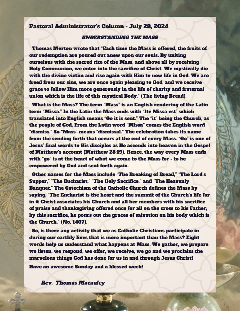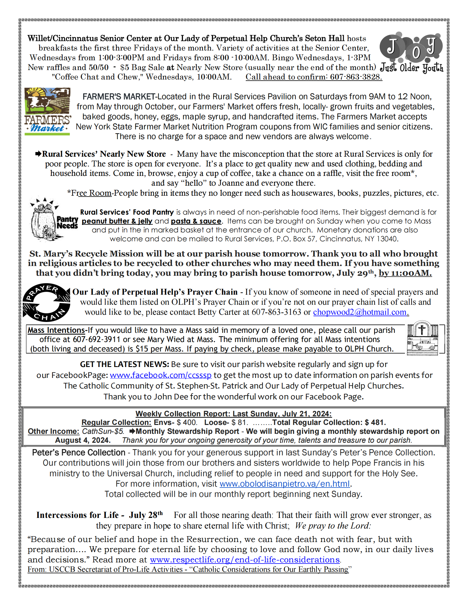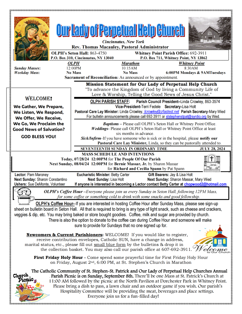 Catholic Community of St. Stephen & St. Patrick Church Bulletin For The Week Of July 28, 2024