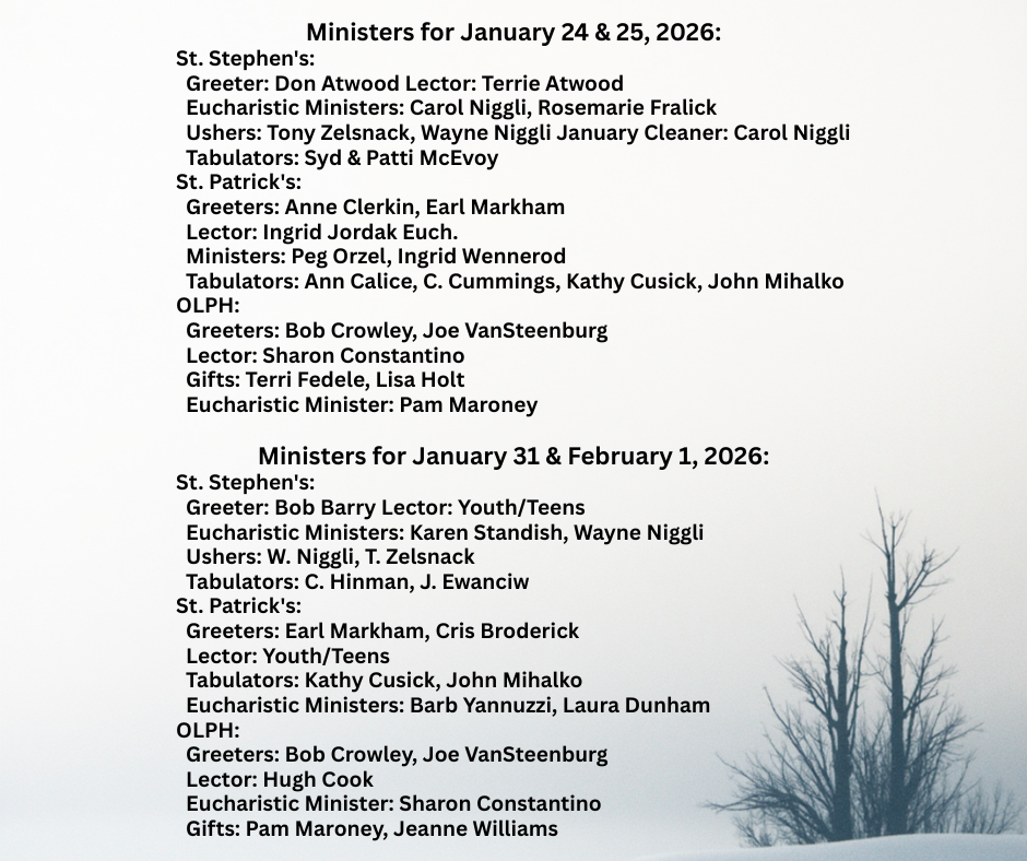 Eucharistic Ministers: Karen Standish, Wayne Niggli