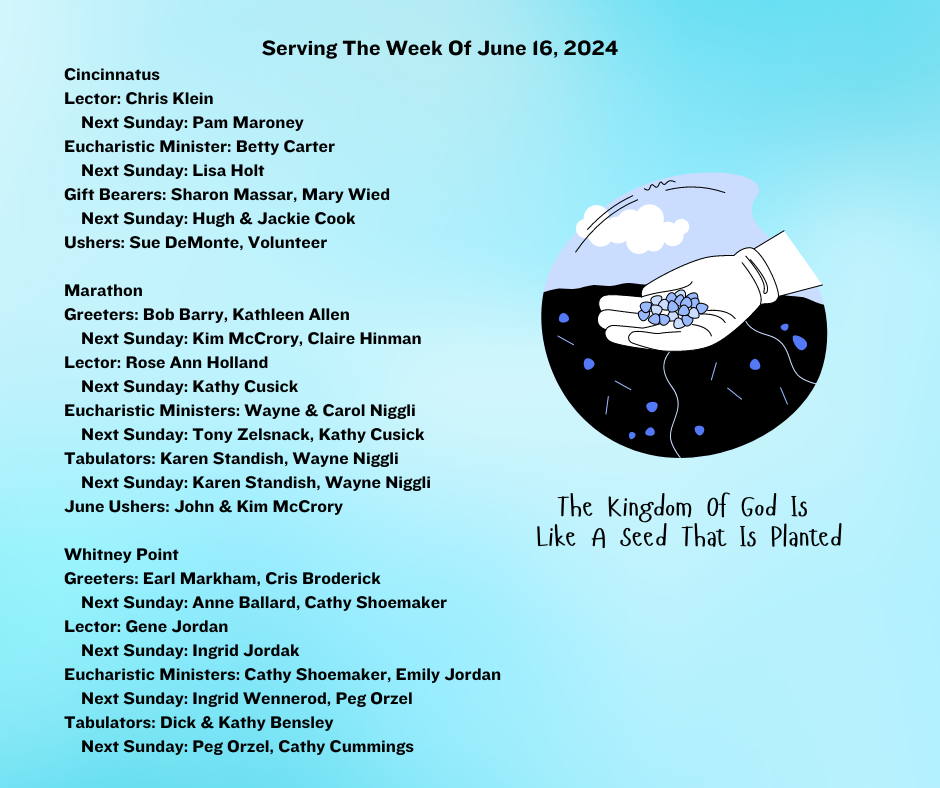 Eucharistic Ministers: Cathy Shoemaker, Emily Jordan