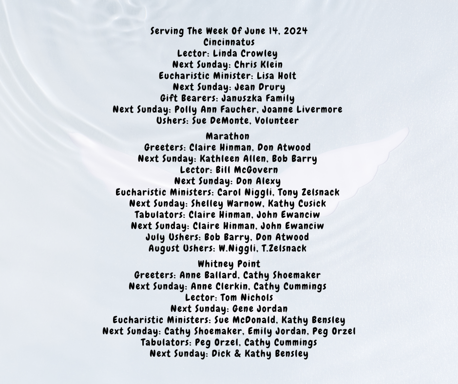 Eucharistic Ministers: Sue McDonald, Kathy Bensley