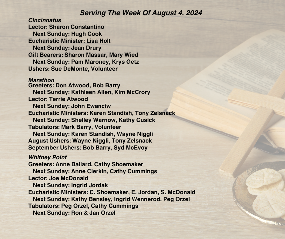 Eucharistic Ministers: Karen Standish, Tony Zelsnack