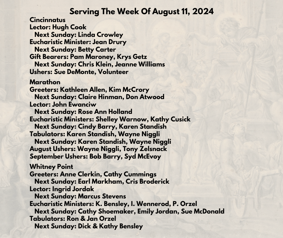 Eucharistic Ministers: Shelley Warnow, Kathy Cusick