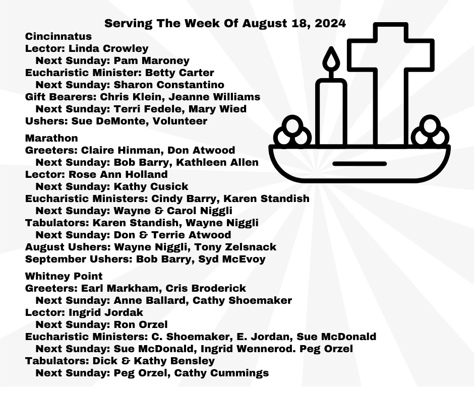 Eucharistic Ministers: C. Shoemaker, E. Jordan, Sue McDonald
