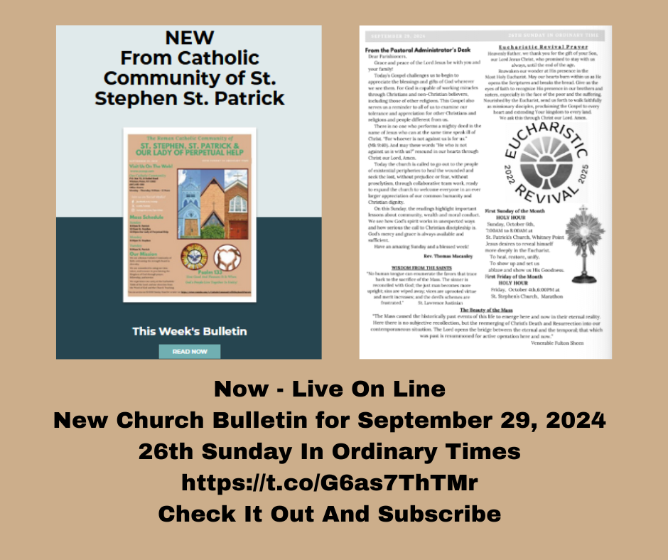 New Church Bulletin for September 29, 2024