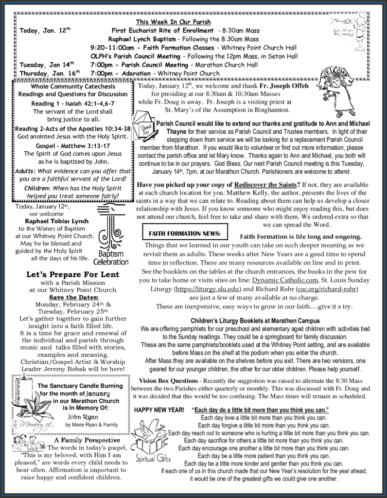 Home > News & Events > CCSSSP Church Bulletin – January 12, 2020