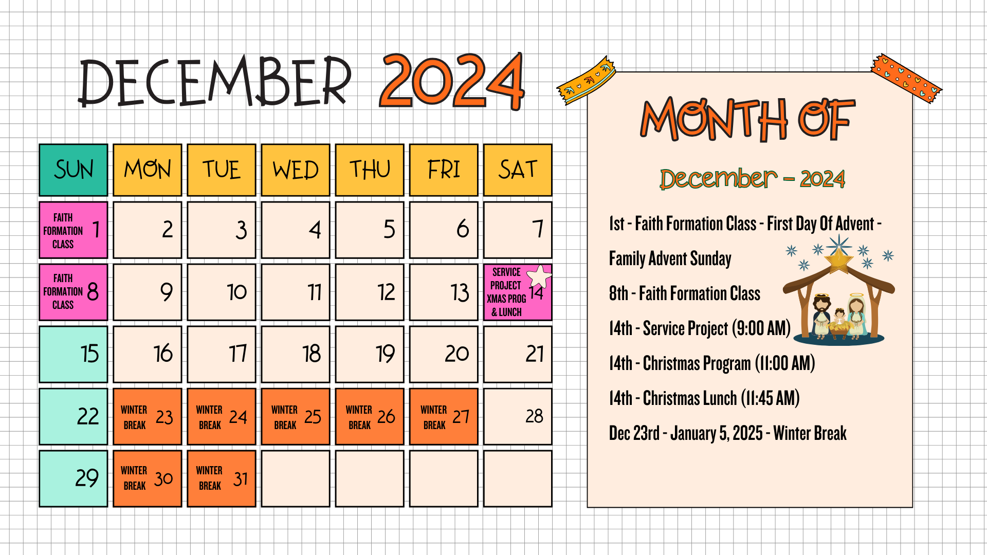 1st – Faith Formation Class – First Day Of Advent – Family Advent Sunday