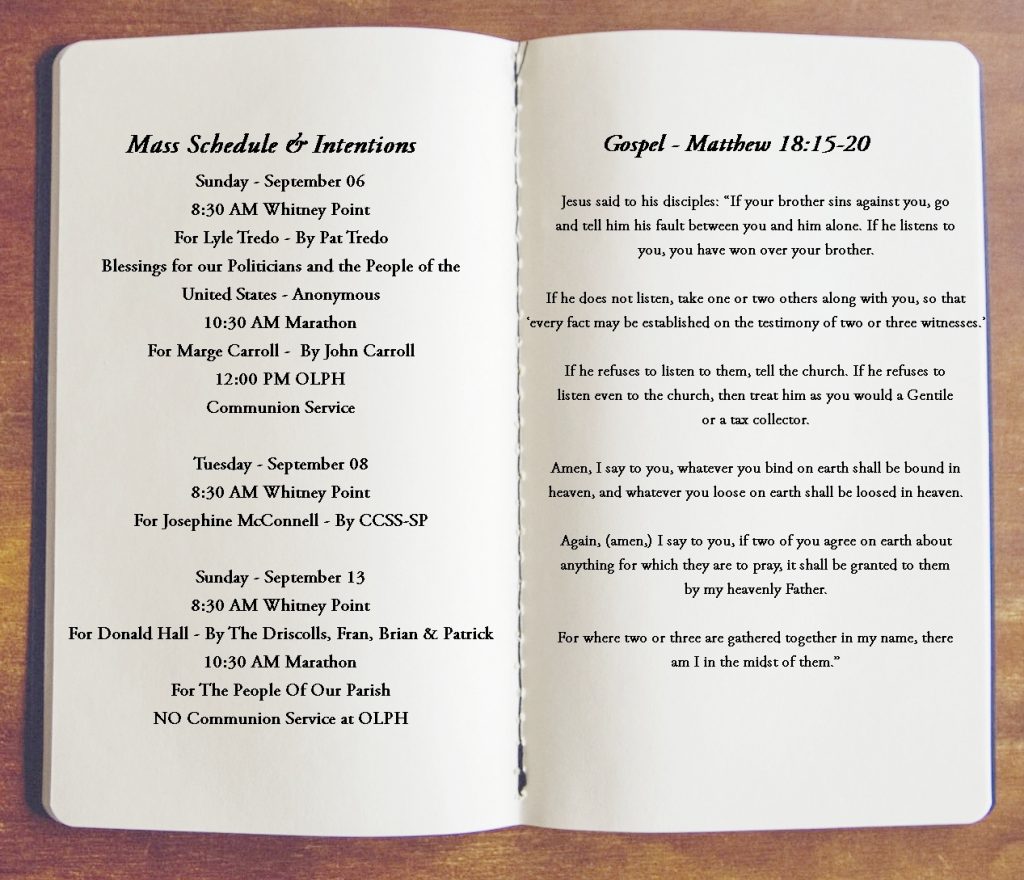 Home > News & Events > Mass Schedule & Intentions September 6, 2020