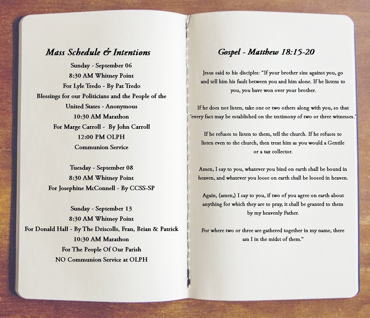 Mass Schedule & Intentions September 6, 2020