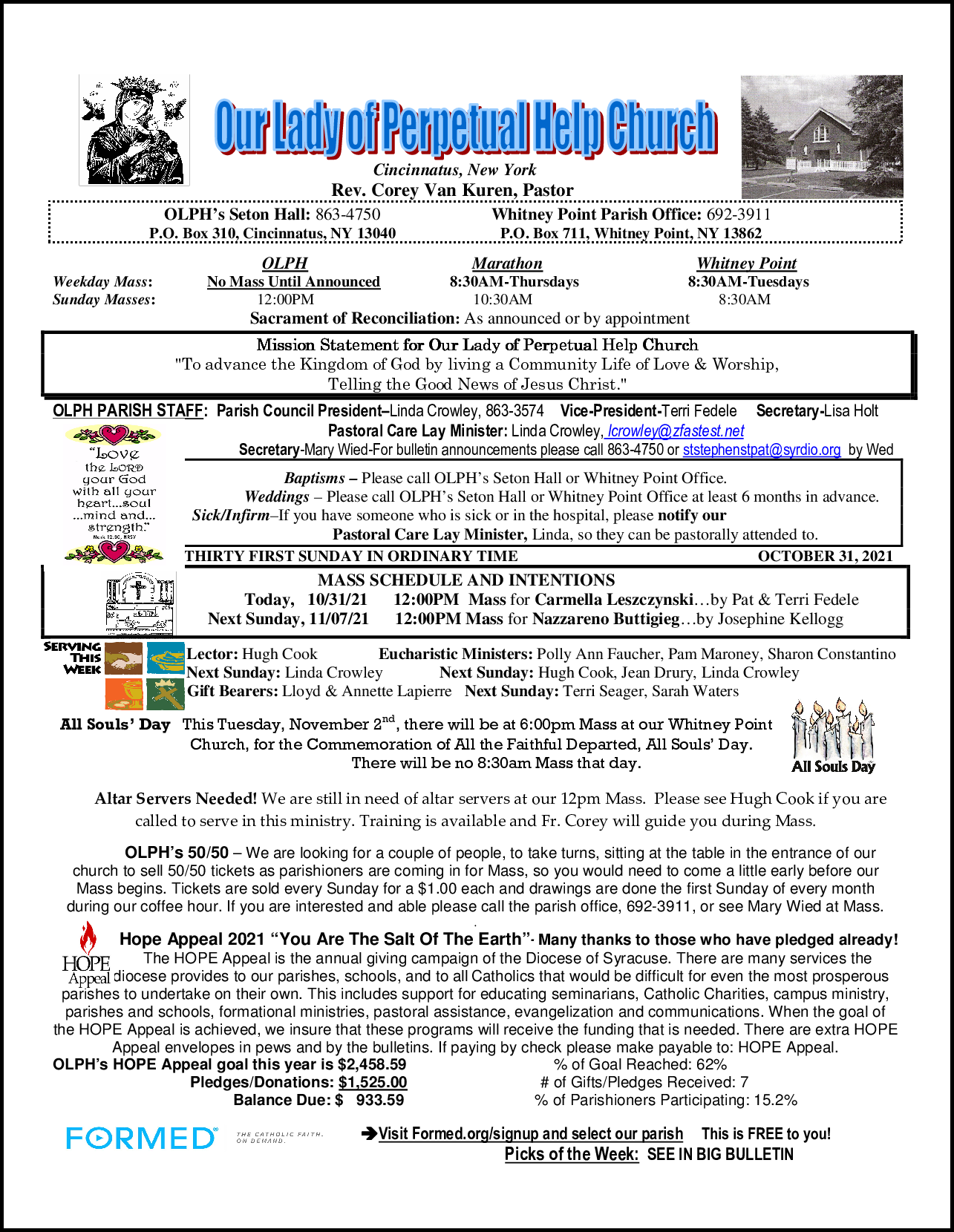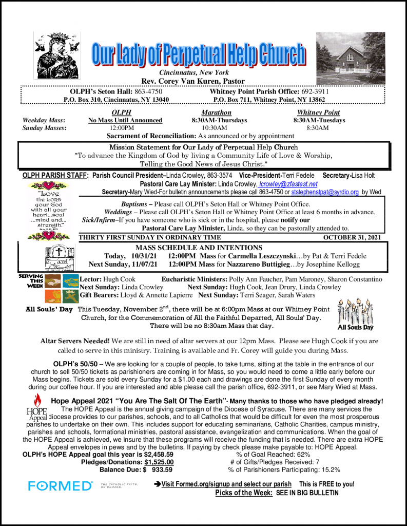 OLPH Church Bulletin – October 31, 2021